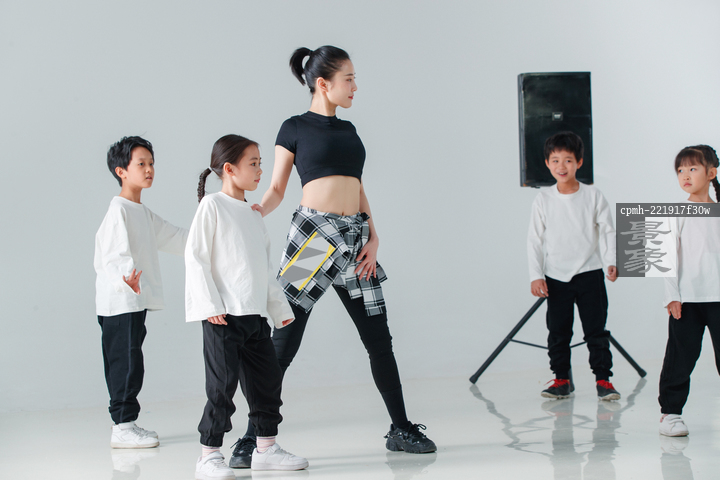 图片标题: 青年舞蹈老师教孩子们学跳舞