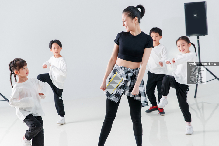 图片标题: 青年舞蹈老师教孩子们学跳舞