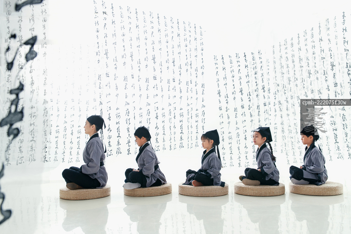 图片标题: 上国学课打坐的小学生