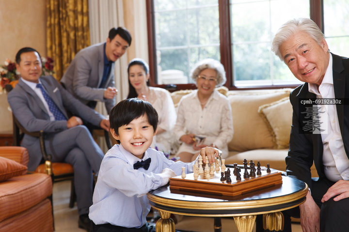图片标题: 祖孙两人在下国际象棋