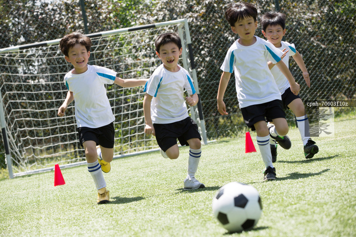 图片标题: 男孩们在球场上踢足球
