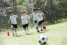 图片标题: 男孩们在球场上踢足球