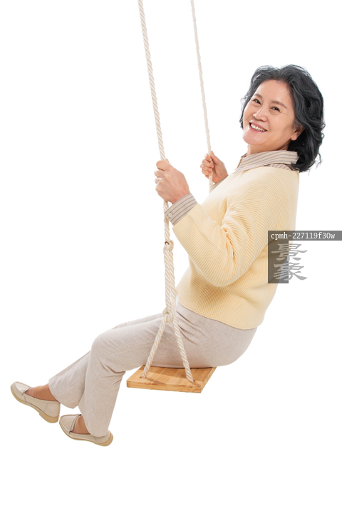 图片标题: 快乐的老年人荡秋千