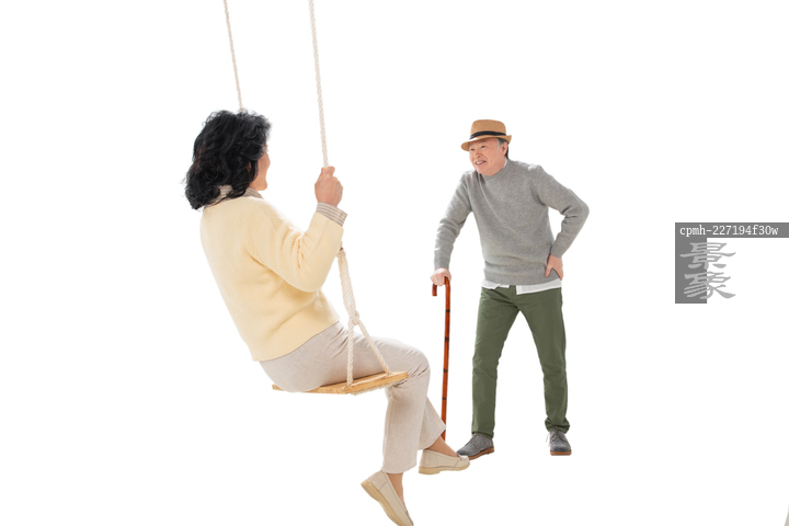 图片标题: 快乐的老年夫妇荡秋千