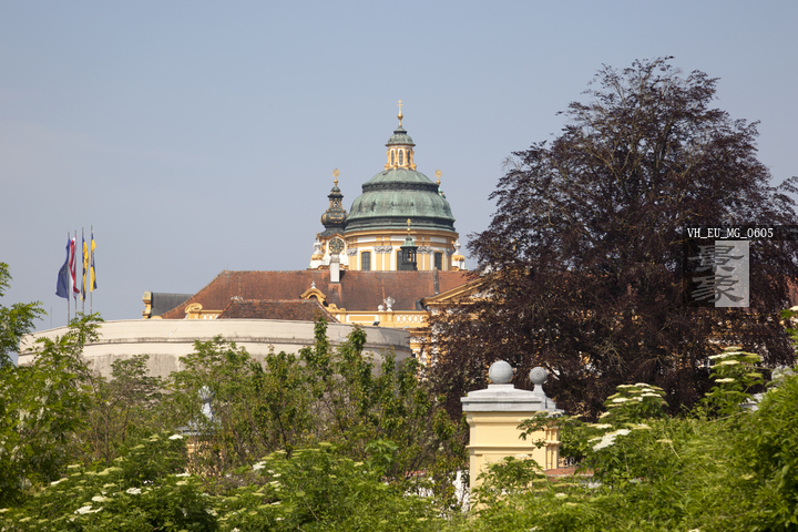 图片标题: 俯瞰梅尔克修道院,本笃会修道院阿维镇梅尔克,奥地利下奥州