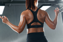 图片标题: 青年女人在健身房举哑铃