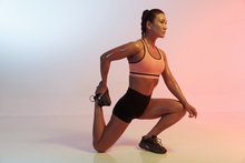 图片标题: 青年女人在健身房举哑铃