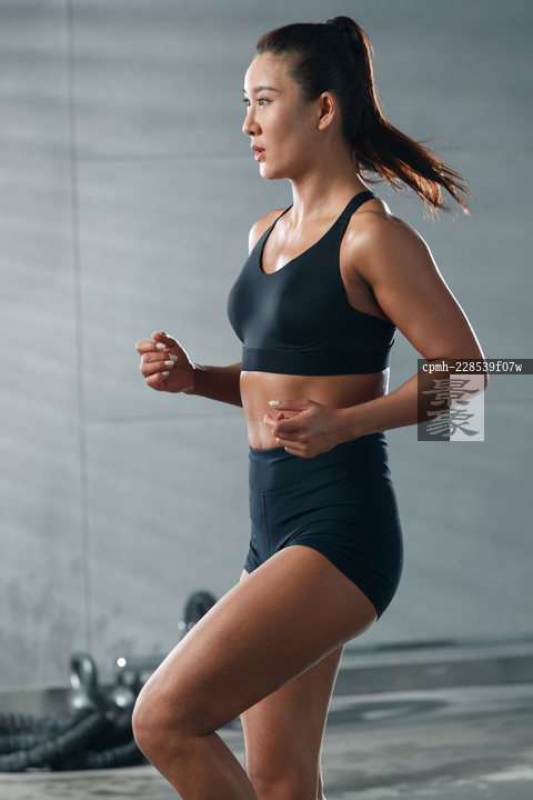图片标题: 健身房里健身的青年女人
