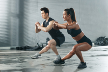图片标题: 青年女人在教练的指导下举重训练
