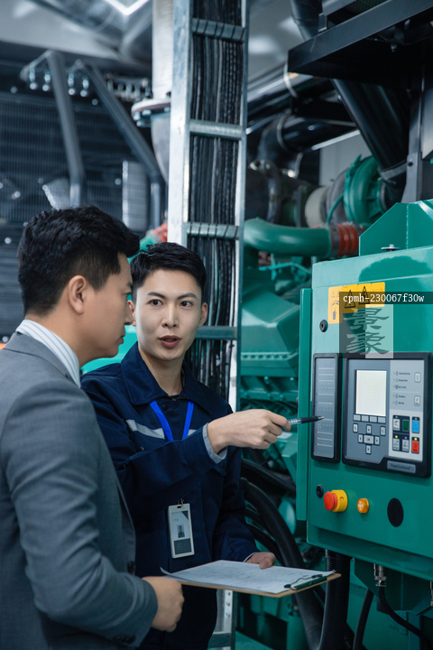 图片标题: 技术人员陪领导在工厂检查机器