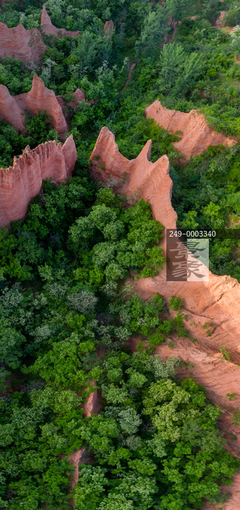 图片标题: 绿色丛林簇拥的丹霞地貌景观