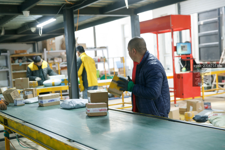 图片标题:     物流人员在仓库里检查核对快件