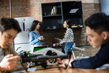 图片标题: 户外凉亭讨论工作的团队