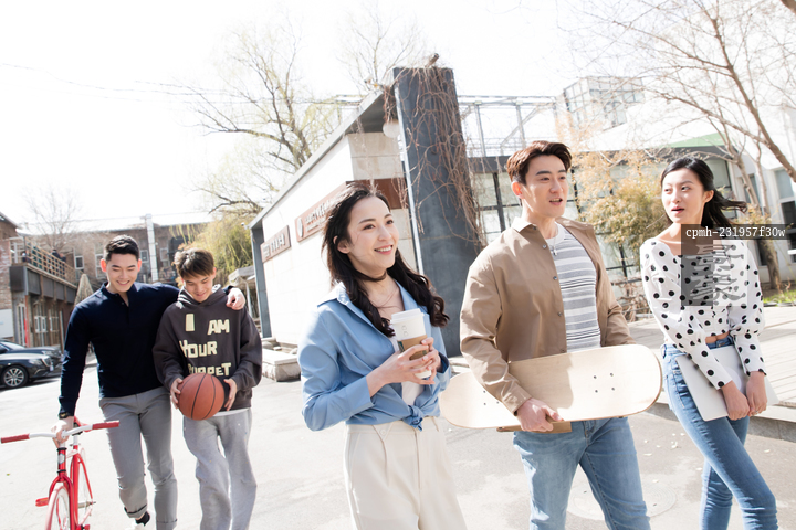 图片标题: 园区里快乐的商务团队