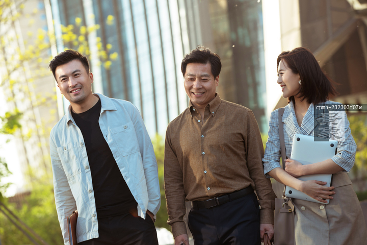 图片标题: 边走路边聊天的快乐上班族