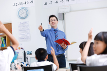 图片标题: 两个小学女生在教室里说悄悄话