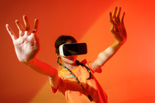 图片标题: 戴着VR眼镜的个性年轻女孩