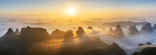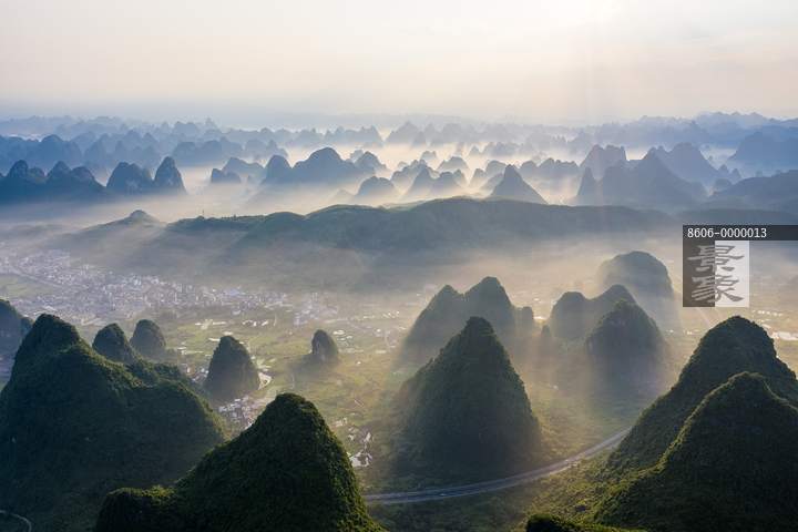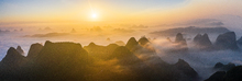 图片标题: 桂林南方喀斯特地貌晨雾日出风光
