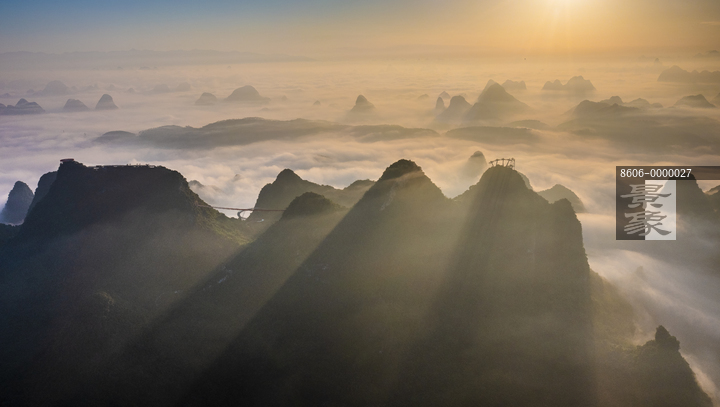 图片标题: 桂林南方喀斯特地貌晨雾日出风光