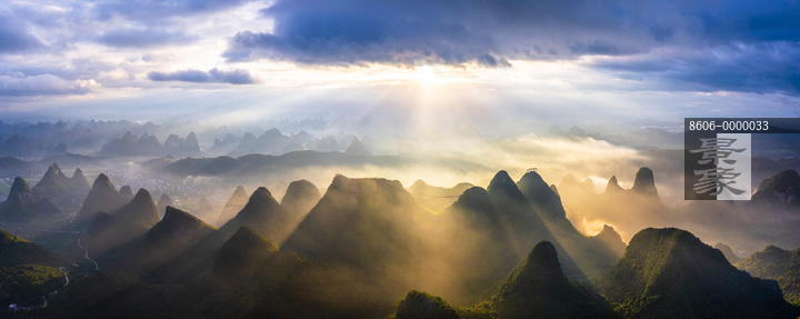 图片标题:     桂林南方喀斯特地貌晨雾日出风光