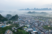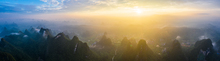 图片标题: 桂林南方喀斯特地貌晨雾日出风光