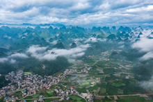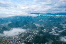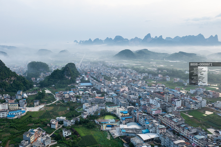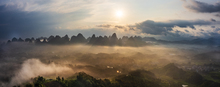 图片标题:     桂林南方喀斯特地貌晨雾日出风光