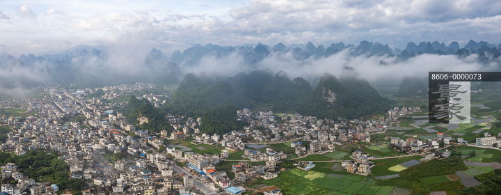 图片标题: 桂林南方喀斯特地貌晨雾日出风光