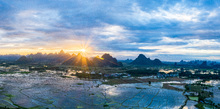 图片标题: 广西桂林临桂会仙水田晨雾日出反射风光