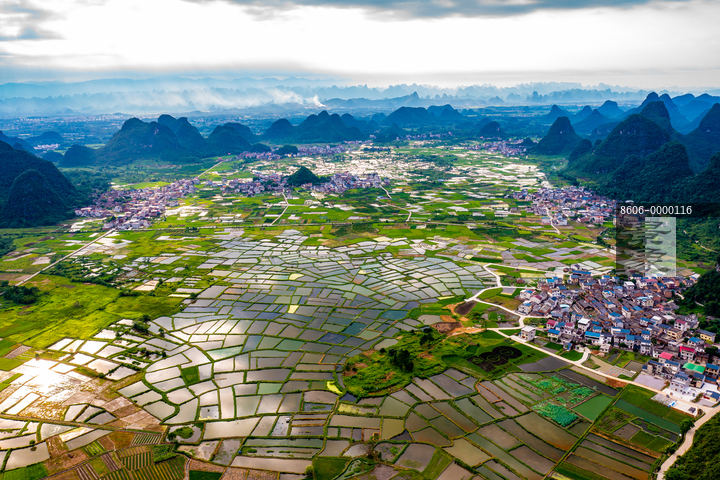 图片标题: 广西桂林临桂会仙水田玻璃田风光