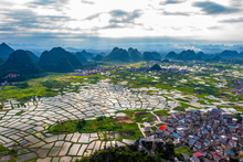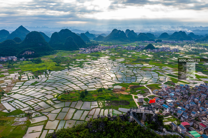 图片标题: 广西桂林临桂会仙水田玻璃田风光