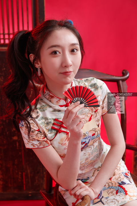 图片标题: 坐在椅子上的国风美少女