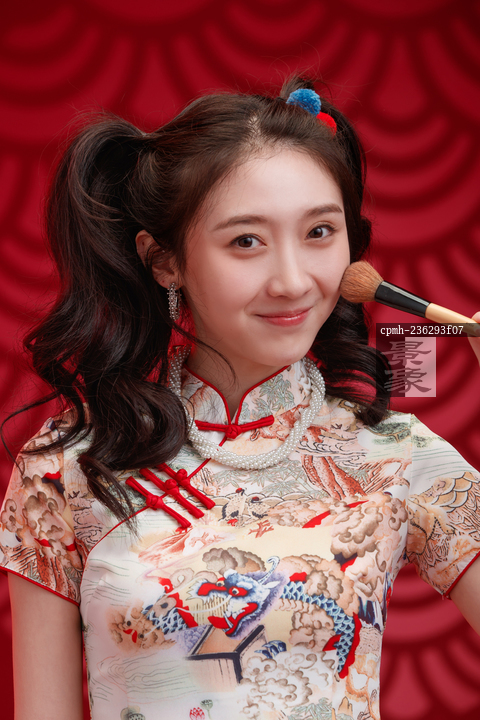 图片标题: 拿着化妆刷的国风美少女