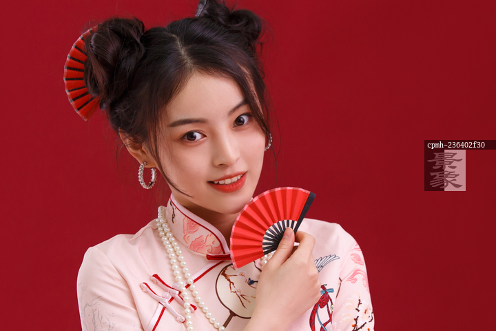 图片标题: 漂亮的国风美少女拿着小扇子
