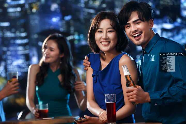 图片标题: 快乐的青年人在酒吧喝酒