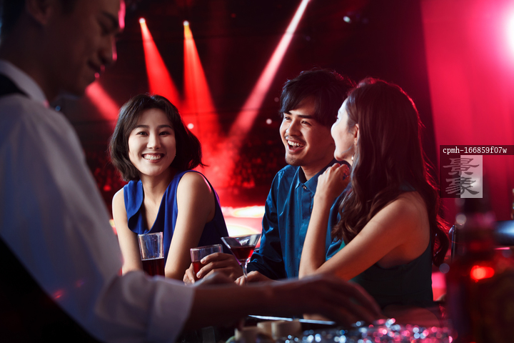 图片标题: 快乐的青年人在酒吧喝酒