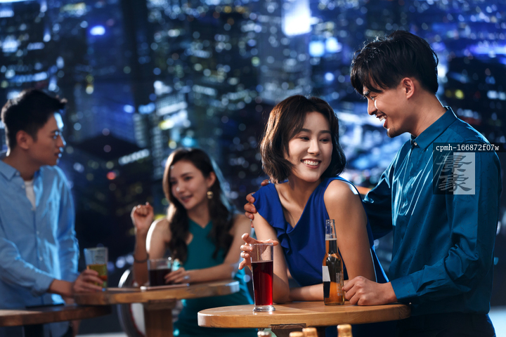 图片标题: 快乐的青年人在酒吧喝酒