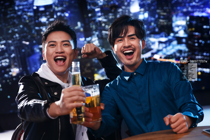 图片标题: 快乐的青年人在酒吧喝酒