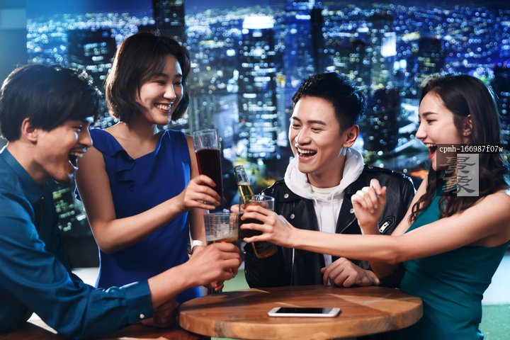 图片标题: 快乐的青年人在酒吧喝酒