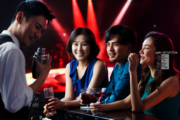 图片标题: 快乐的青年人在酒吧喝酒