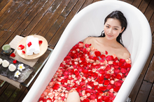 图片标题: 年轻女人在户外洗浴