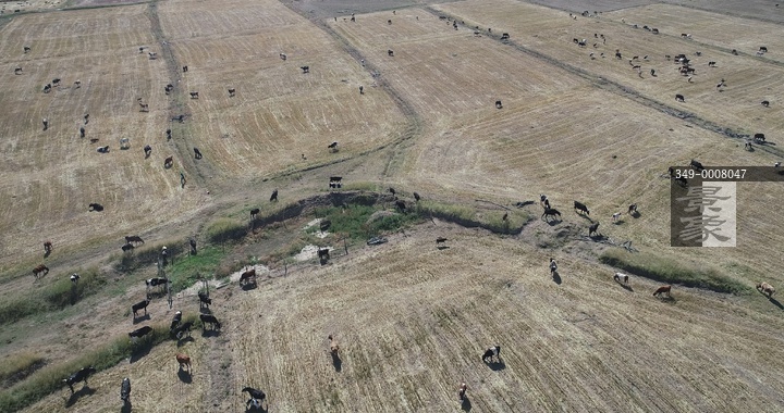 图片标题: 新疆巴里坤:秋收尽,牛羊壮,麦地肥