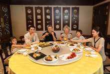 图片标题: 幸福家庭在餐厅用餐