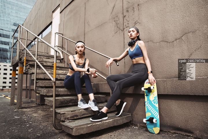 图片标题: 拿着滑板的时尚美女