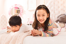 图片标题: 两个可爱的小女孩在卧室玩耍