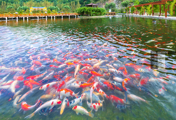 图片标题: 山村池塘里大群大群的观赏鱼